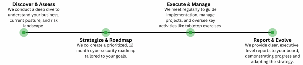 Book a no-obligation discovery call with our vCISO to discuss your specific challenges and see if our CISO-as-a-Service is the right fit.